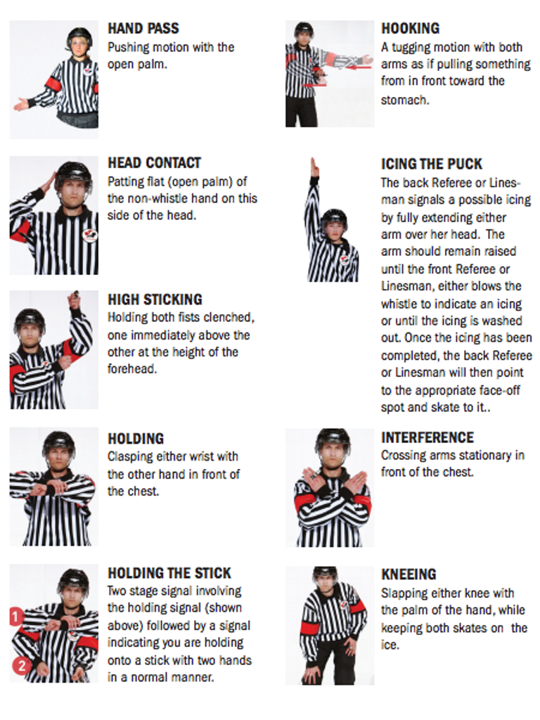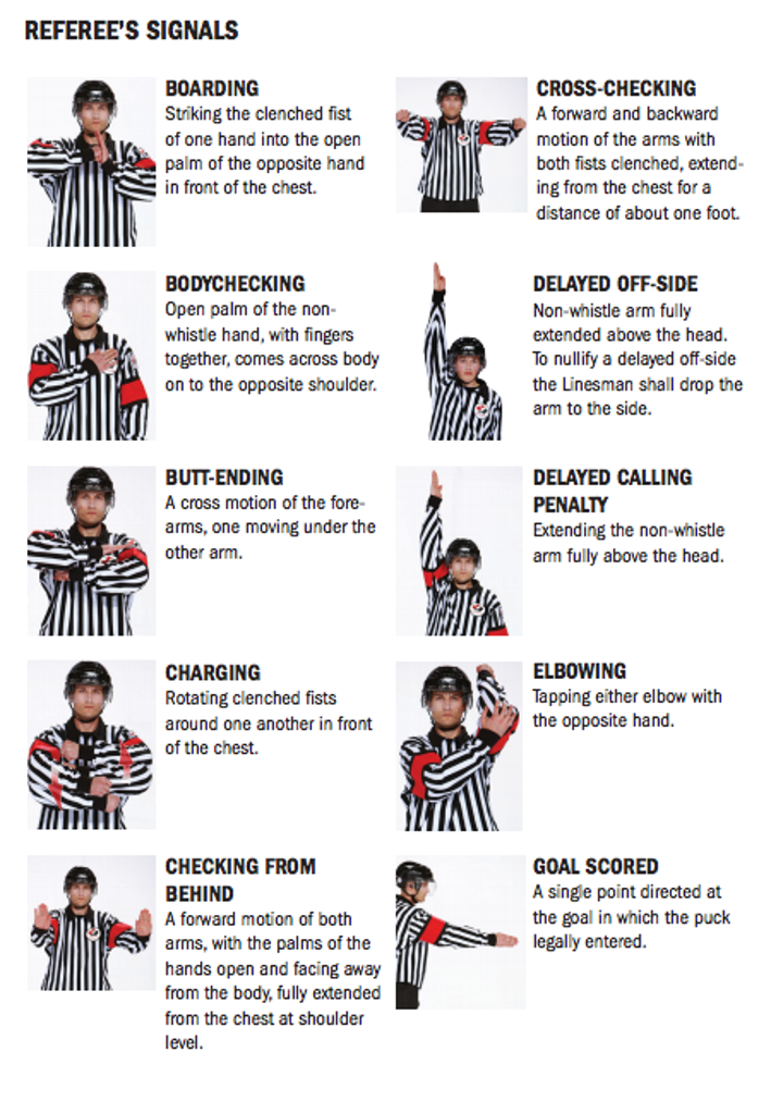 A visual guide to the signals used by Referees (as outlined by Hockey Canada)